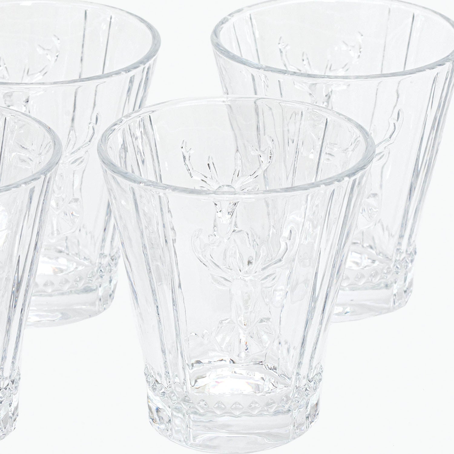 Ihanat puristelasista valmistetut lasit peuranpään kuvalla ja muilla ihanilla yksityiskohdilla. Highlands lasit tuovat jotain ekstraa pöytään, ja ovat upeat kaikkien astiastojen ja aterimien kanssa.