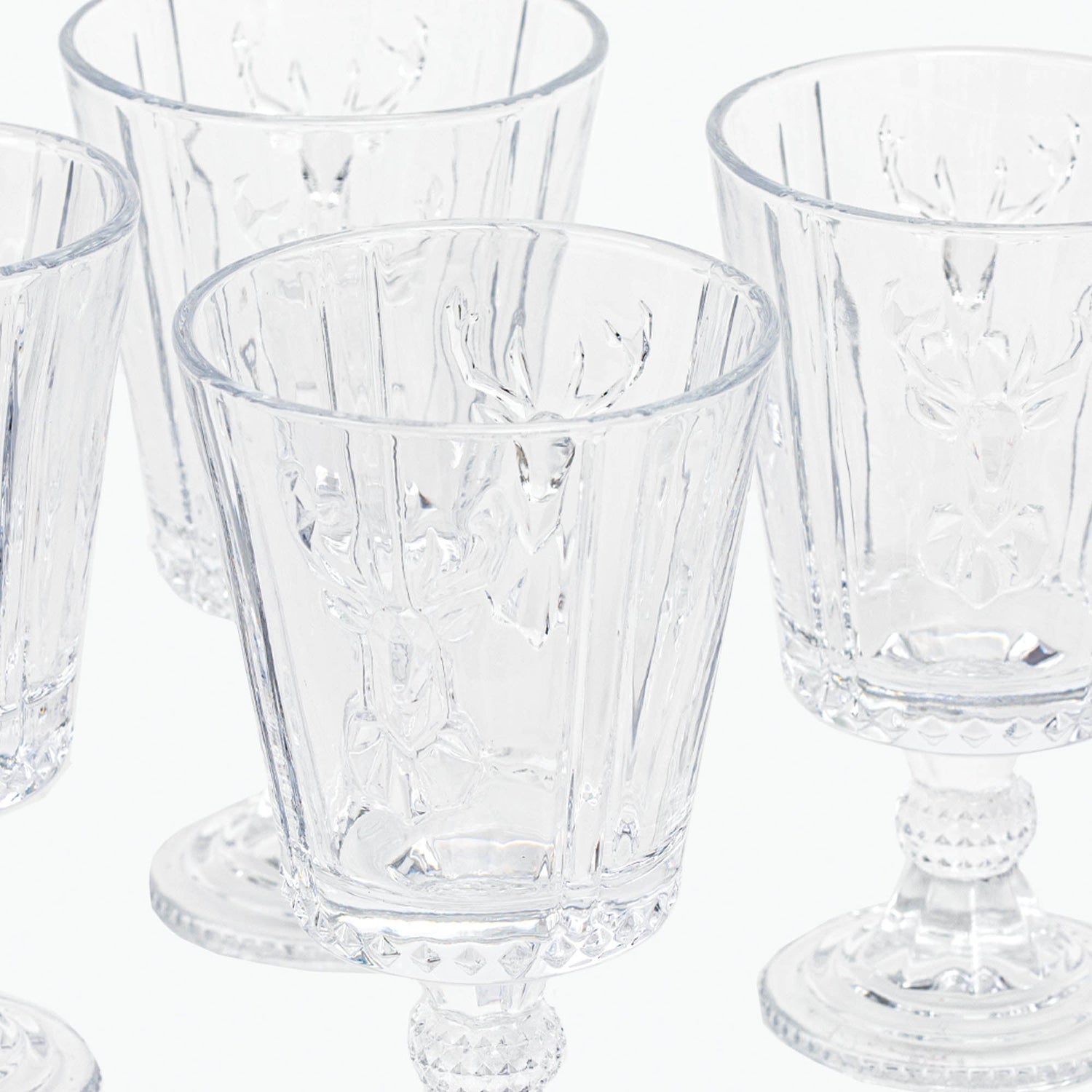 Ihanat puristelasista valmistetut lasit peuranpään kuvalla ja muilla ihanilla yksityiskohdilla. Highlands lasit tuovat jotain ekstraa pöytään, ja ovat upeat kaikkien astiastojen ja aterimien kanssa.