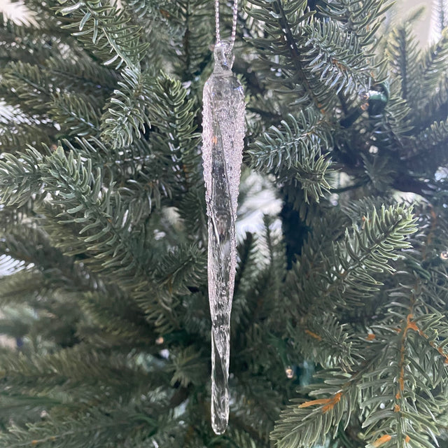 Tämä kaunis joulukuusenkoriste huurteisesta lasista on jääpuikon muotoinen ja huokuu pehmeää, talvista tunnelmaa. 15 cm pituudellaan se roikkuu kuusessa elegantisti, mutta on yhtä upea myös osana pöytäkoristetta, asetelmaa vadilla tai ikkunassa. Koriste, jonka annat mielelläsi lahjaksi – mutta jonka haluat helposti pitää itse.